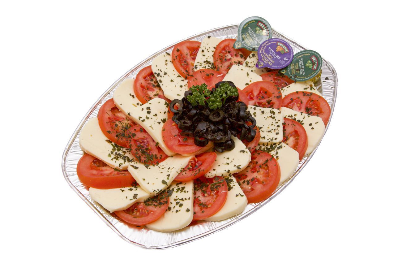 Složení: rajčata, sýr mozzarella, olivy, olivový olej, ocet