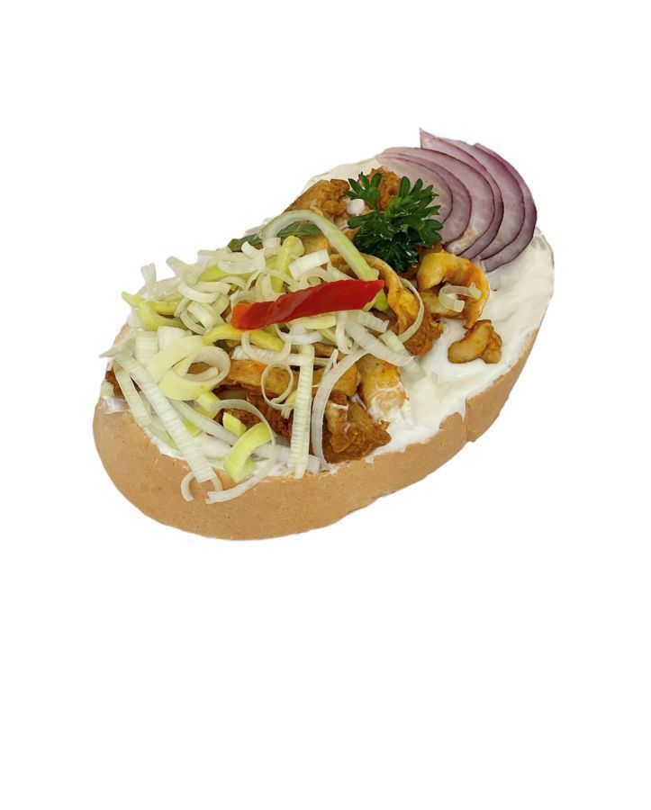 dresing, veka, kuřecí maso gyros, pórek, červená cibule, petržel, kapie