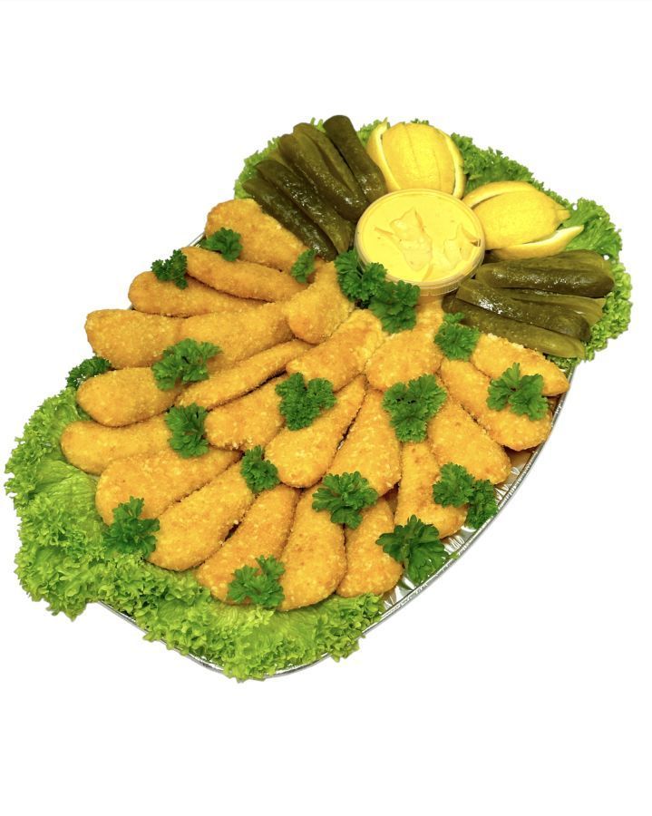 strips z kuřecích řízků, Francouzský dresing, lolo salát, okurka