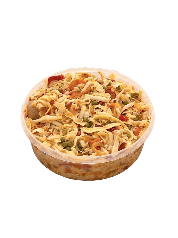 sýr Eidam, paprika, cibule, okurky, řepkový olej, feferony, hrášek, kapie, cukr, sůl, pepř