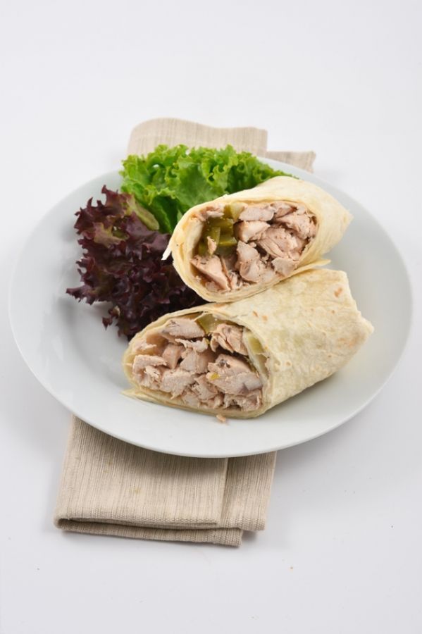 tortila, dresing speciál, smažené drůbeží maso, koření Gyros, okurka