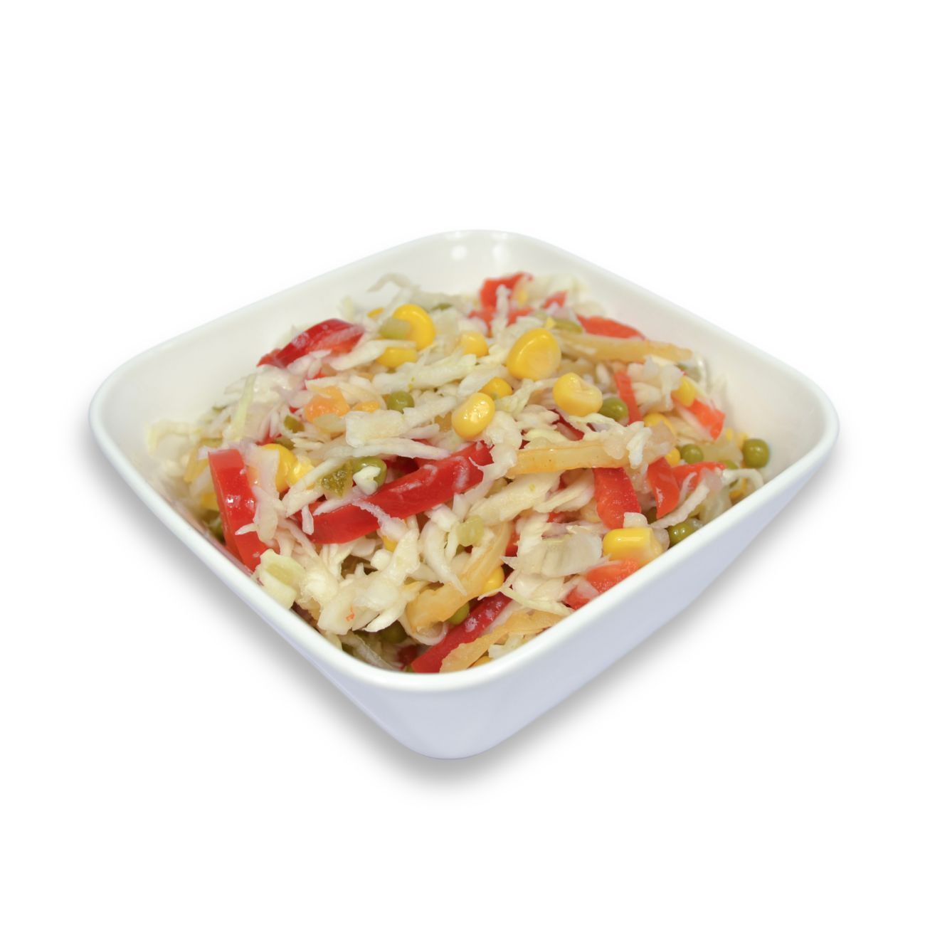 bílé zelí, kukuřice, kapie, hrášek, cibule, řepkový olej, provensálské koření, cukr, sůl